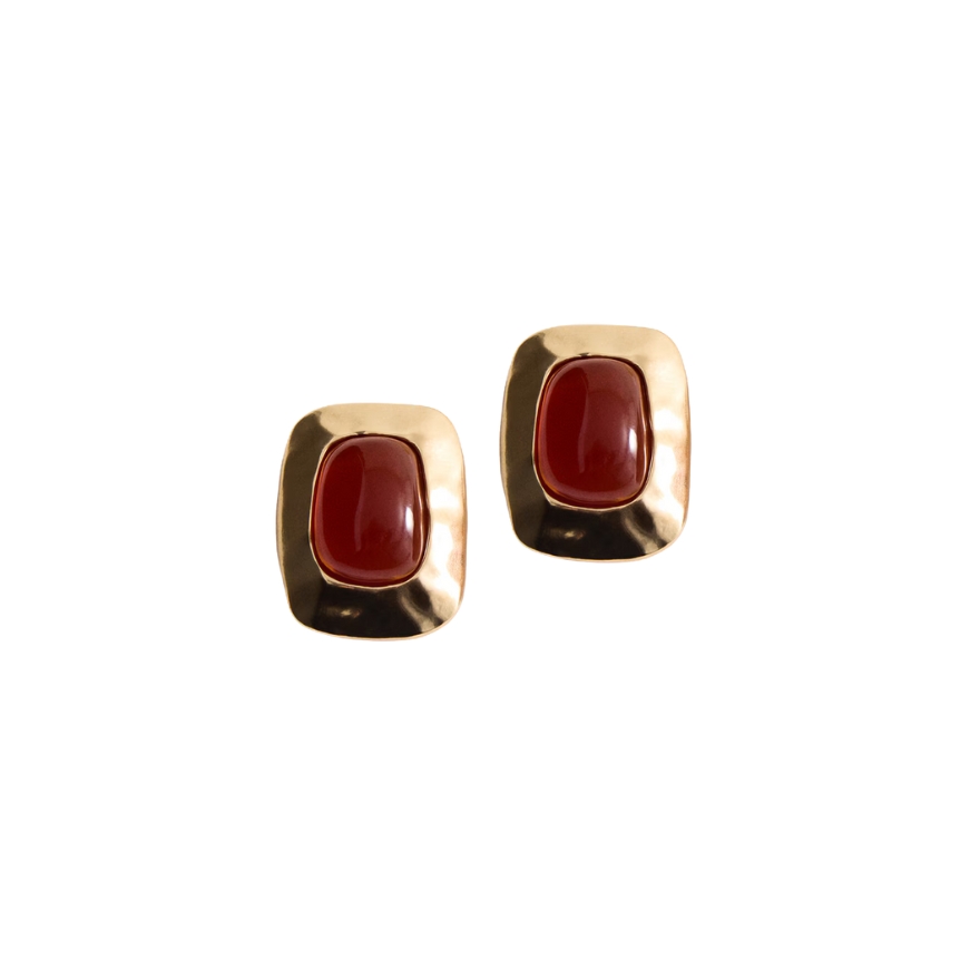 Ovaj komad predstavlja elegantan pristup chunky trendu kroz zlatne naušnice s dubokim crvenim kamenom u centru. Ovaj dizajn savršeno balansira klasičnost i suvremeni duh, dok pravokutni oblik dodaje strukturu i sofisticiranost. Idealne su za poslovni brunch ili večernju galeriju umjetnosti gdje želite ostaviti snažan dojam.