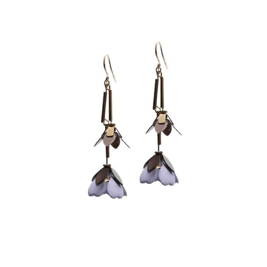 Cvjetne naušnice s nježno plavim laticama i zlatnim detaljima donose romantičan pristup chunky trendu. Njihova duljina i delikatni motiv stvaraju zanimljiv kontrast između veličine i ženstvenosti. Ove naušnice su idealan izbor za brunch ili romantičnu večeru gdje želite dodati dozu zaigranosti svojem looku.