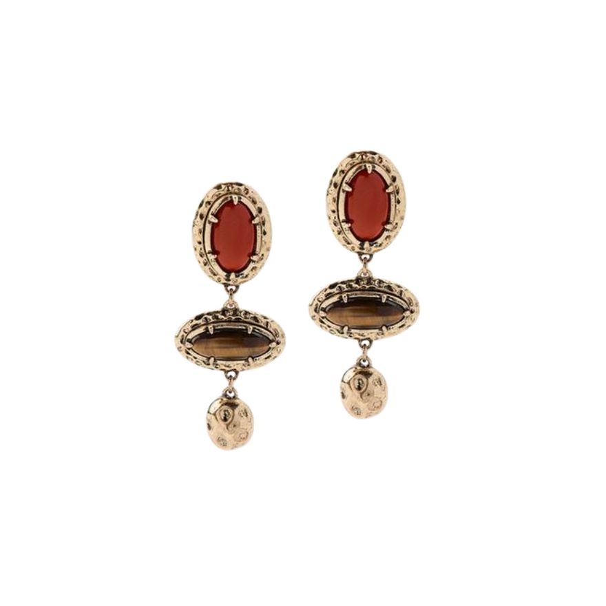Vintage inspiracija dolazi do izražaja kroz duge zlatne naušnice s crvenim kamenjem u tradicionalnom okviru. Njihov bogati dizajn i klasičan pristup čine ih savršenim za formalne prilike ili kad želite dodati dozu vintage elegancije svom stilu.