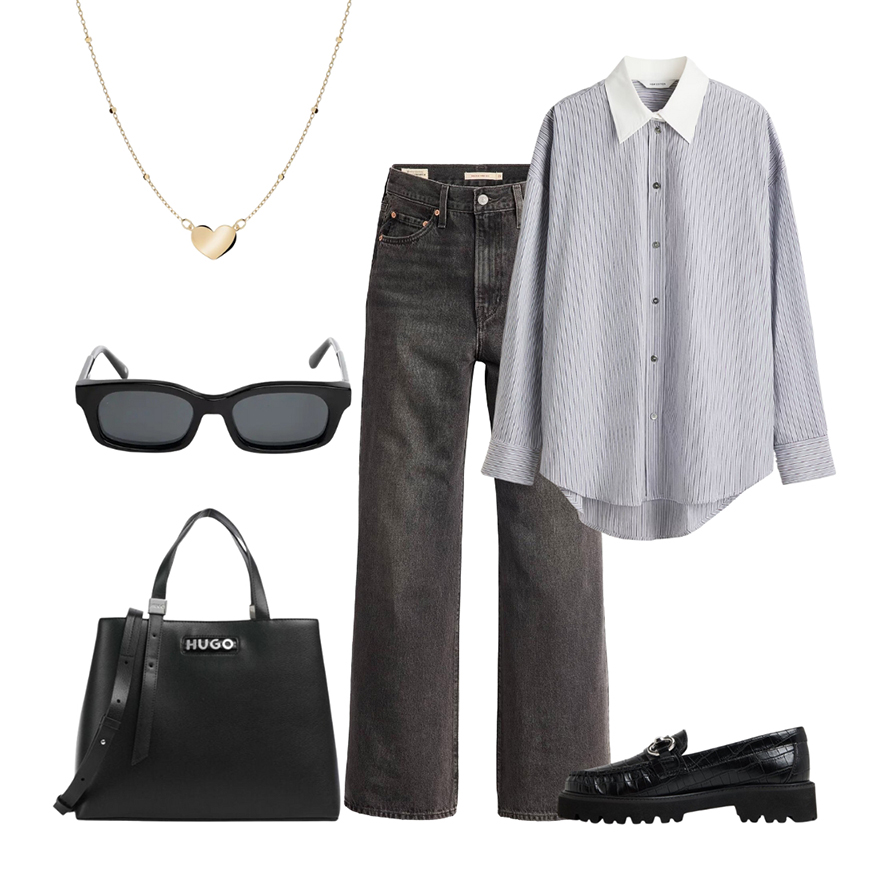 Look utjelovljuje onaj tipični vibe po kojem je poznata Shay Mitchell: ležeran, ali promišljen. Oversized prugasta košulja s bijelim ovratnikom kombinira se s tamnim trapericama ravnog kroja i crnim loafericama s robusnim potplatima. To je outfit koji jednako dobro funkcionira za jutarnju kavu, sastanak ili spontani shopping, a zahvaljujući strukturiranoj crnoj torbi i retro sunčanim naočalama, zrači lakoćom i urbanim luksuzom.