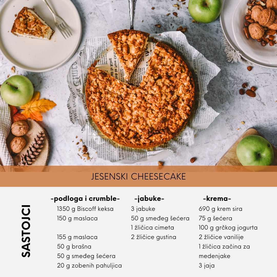 Ne znam za vas, ali za mene je jesen kombinacija jabuka i cimeta. A upravo je takav i ovaj cheesecake, kremast, sočan, miriše na jesen i grije dušu.
