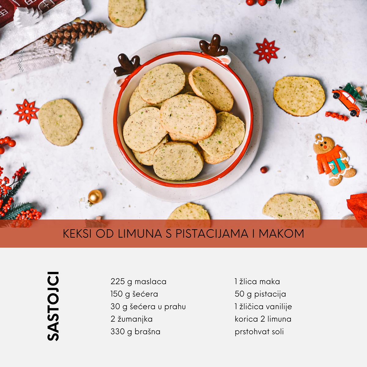 Vjerujem da smo početkom prosinca svi u planiranju božićnih kolača. Ja uvijek idem metodom da moram imati nešto čokoladno, nešto citrusno i nešto orašasto. Ove godine sam se odlučila za kekse od limuna s pistacijama i makom, koji zadovoljavaju čak dva od tri uvjeta!