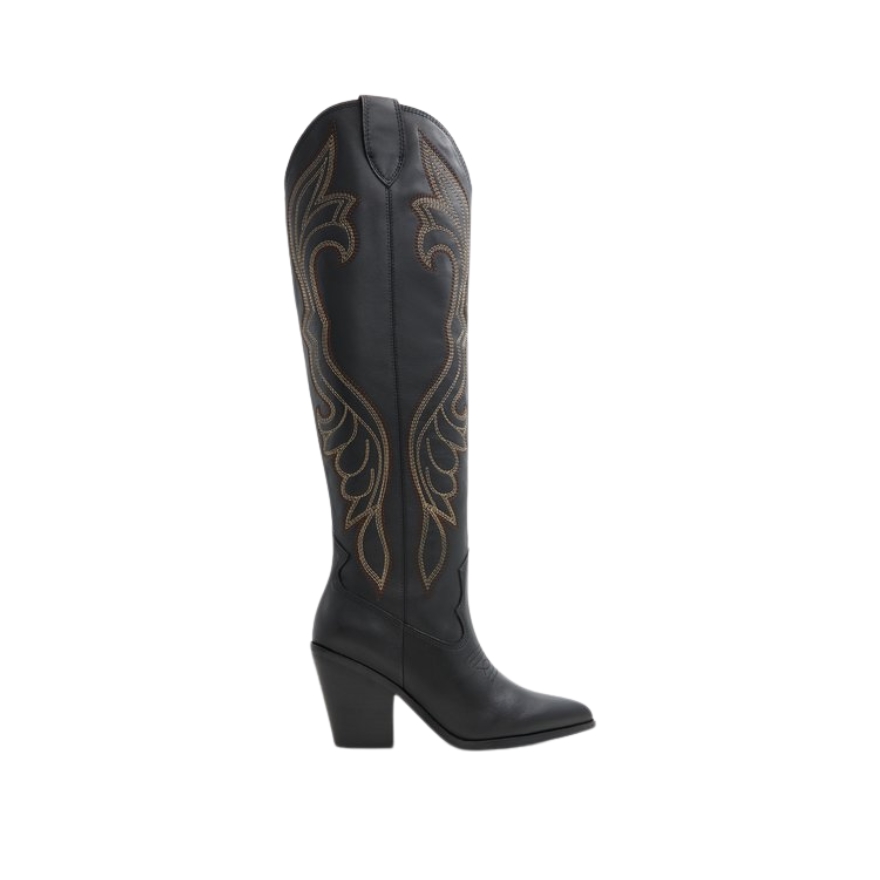 Kaubojske čizme ponovno su na samom vrhu trendova, a ovaj model od crne kože s visokom sarom i izvezenim dizajnom unosi dozu rock estetike u svaki outfit. Western vibra savršeno se uklapa u aktualni modni miks u kojem se susreću grunge i profinjeni minimalizam. Uparite ih s wide-leg trapericama i kožnatim komadima za instant cool-girl efekt ili ih nosite uz romantičnu maksi haljinu za chic kontrast koji priča priču.