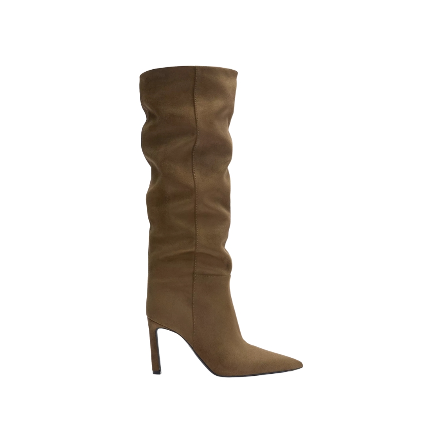 Visoke čizme od mekane brušene kože s naboranim efektom i elegantnom petom oličenje su jesenskog chica. Buttery soft tekstura u toploj taupe nijansi donosi dodatnu dimenziju outfitu, dok nabori unose pokret i lakoću. Riječ je o investicijskom modelu koji podiže svaku kombinaciju – od mini haljina i midi suknji do skinny trapera – garantirajući look koji je istovremeno sofisticiran i moderan.